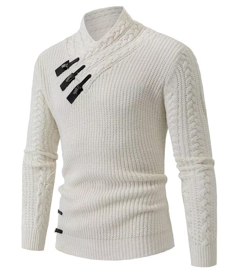 Herren-Kaschmirpullover mit Lederknopf-Schrägkragen
